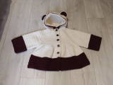 Comme d’habitude, je suis tombée à cours de rouge ! Il me restait seulement 6 petits tours à faire pour la deuxième manche…. 🙁 J’ai donc détricoté ma chouette pour terminer ce manteau. Tant pis, je la referai dans une autre couleur!